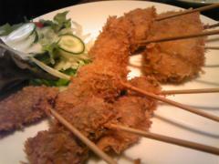 今日はカミナリコンニヤク・クジラ串カツを注文、大阪風に「ソースは一回漬やで!」とこれまた嬉しいフレーズ(^−^)