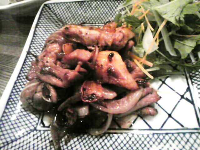 イタドリ・京アゲとふきの煮物・キンピラ・小松菜とじゃこカツオの削り節なんて昔の手動で削った物でめちゃ美味しかった。親鳥にんにく炒めも香ばしくていい!