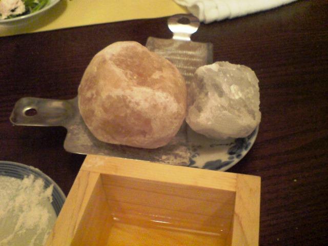 モンゴルから取り寄せた熟成した塩と若い塩、削ってそのつどかけます。